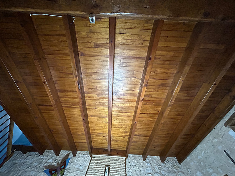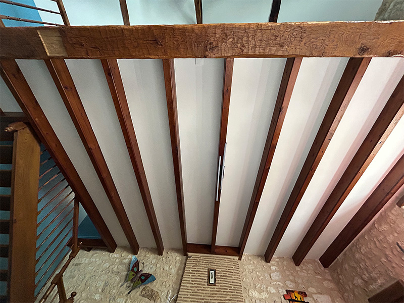 La transformation du plafond a été spectaculaire. Les entres poutres, autrefois sombres et oppressantes, sont désormais d’un blanc immaculé, créant une atmosphère lumineuse, fraîche et moderne. Le client était ravi du résultat et a apprécié notre professionnalisme, notre savoir-faire et notre souci du détail.